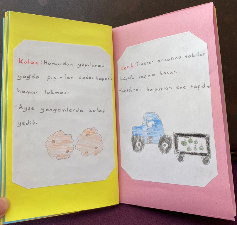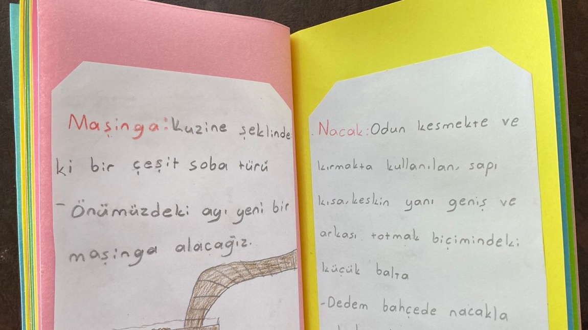 Okulumuz 3/A sınıfı öğrencilerinden Beren KILIÇ ve Melihanur TEZEL'in hazırlamış oldukları yöresel kelimeler sözlüğü ile ilçe yarışmasına katılım sağladık.